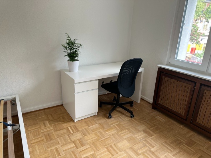 Wir präsentieren Ihnen hier ein tolles möbliertes Zimmer in einer 2-Zimmer-Wohnung. Das WG-Zimmer hat eine Fläche von ca. 19 qm und ist ausgestattet mit einem Bett (140 x 200 cm mit Lattenrost), Schreibtisch, Bürostuhl, Kleiderschrank, Nachttisch und Regal.