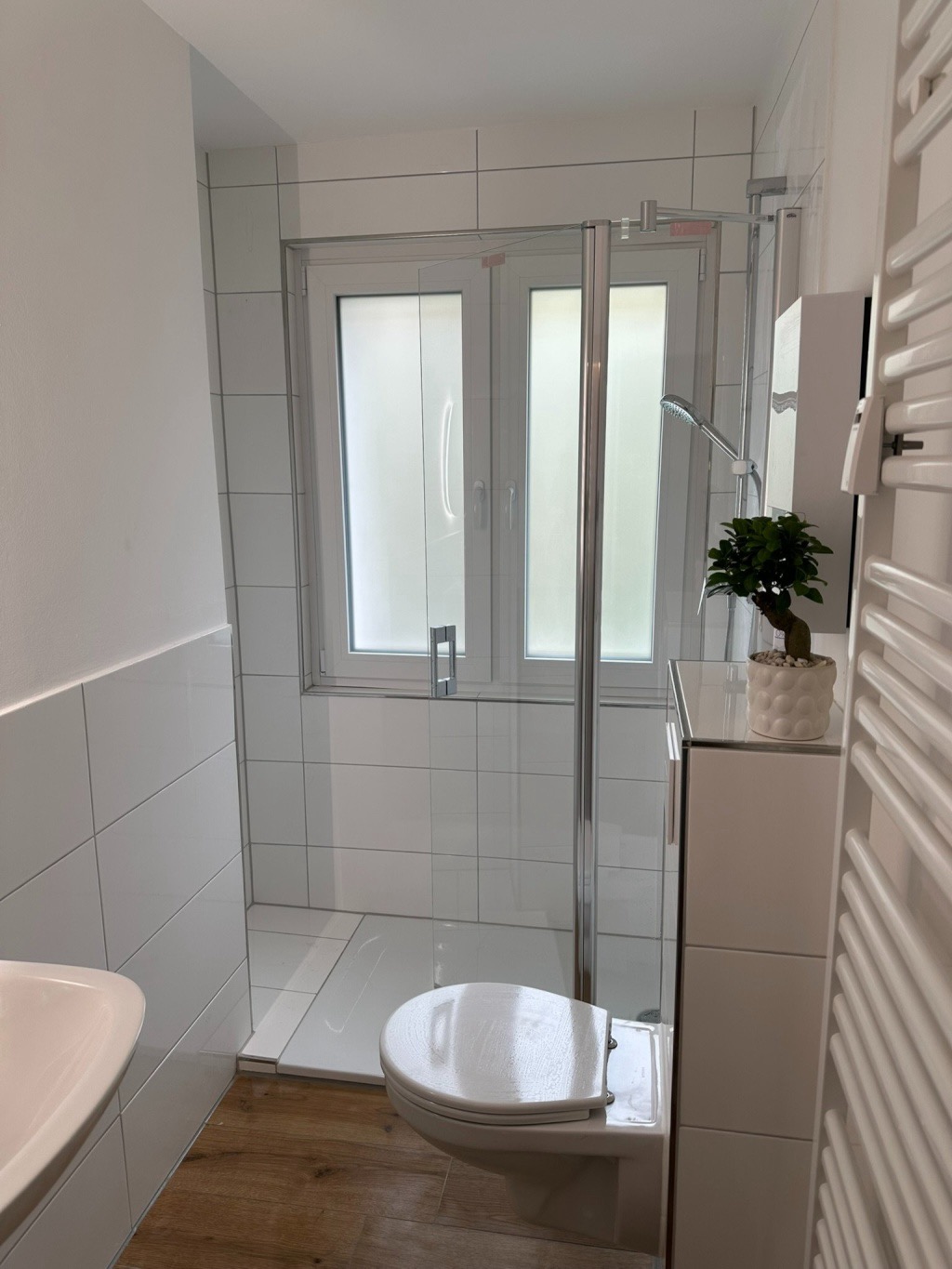 Die Wohnung wurde 2024/2025 frisch saniert und erhielt dabei ein komplett neues Badezimmer mit Dusche, Hänge-WC und Handtuchheizkörper.